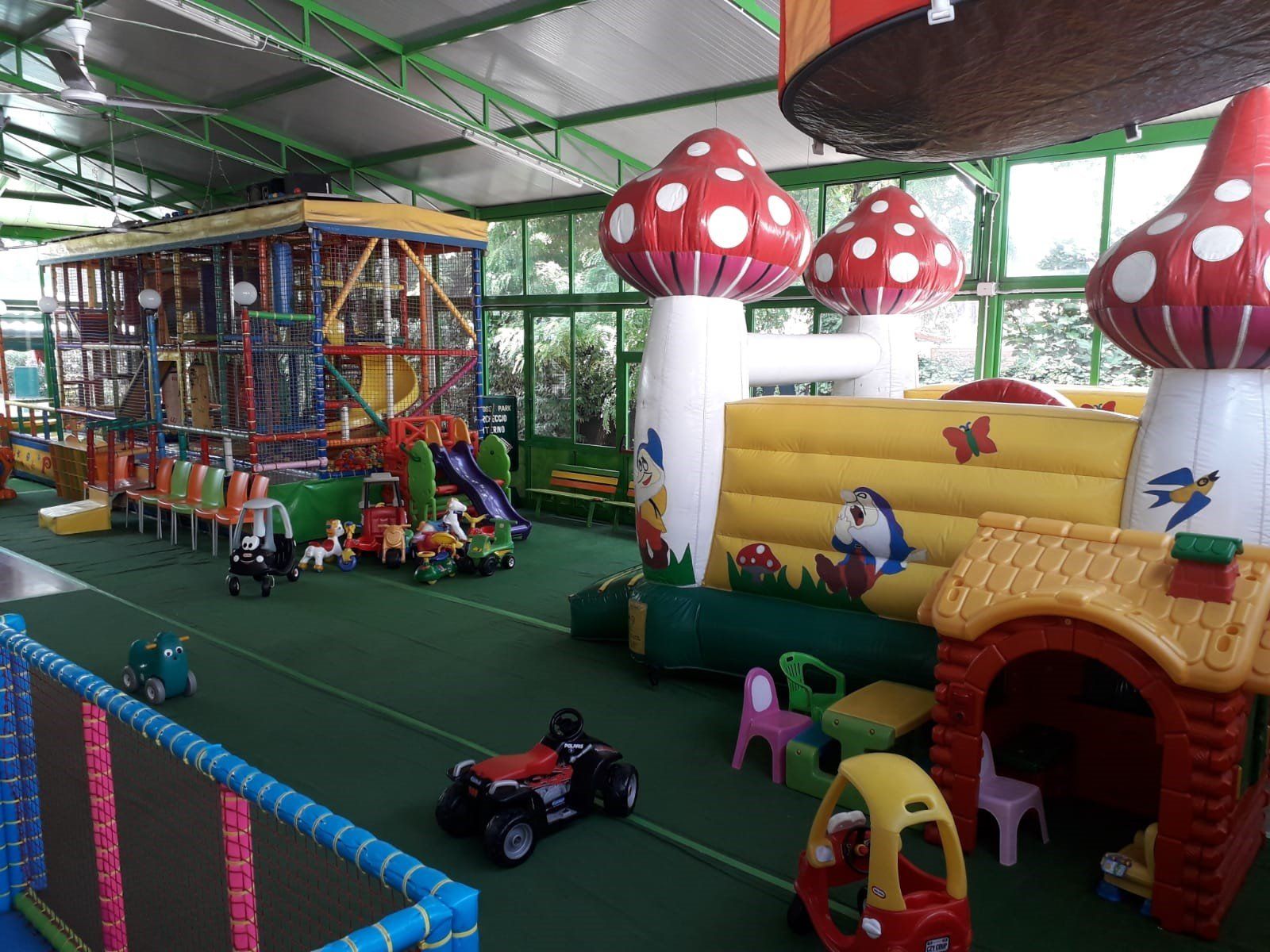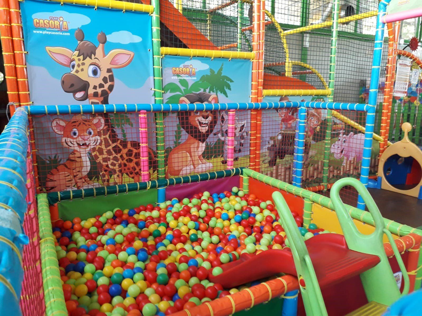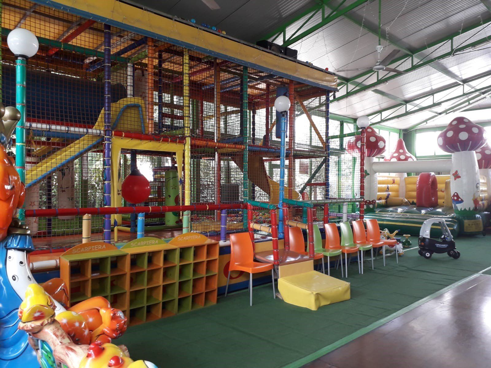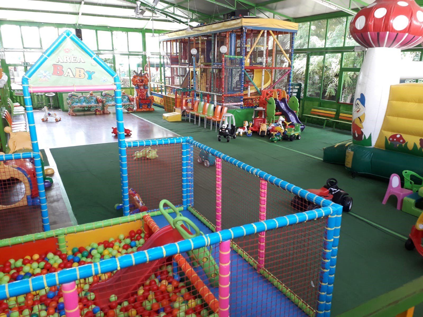 un'area di oltre 350 mq ed è dotata di scivoli gonfiabili, vasche con palline, tappeti elastici, casette e tantissimi giochi per bambini.